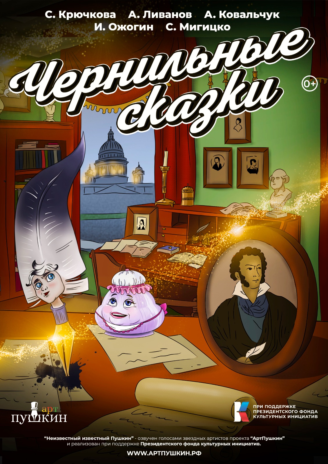 "Путешествие в страну сказок"/8 серий и "Чернильные сказки. Неизвестный известный Пушкин"/5 серий.